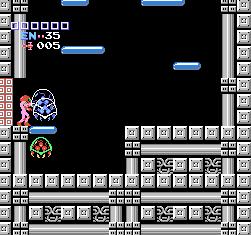 This doorway is a great place to power up. When you come back into the room, 2 or 3 Metroids will come at you. Freeze them quickly and destroy them to refill your energy and missiles. if one gets on you, just go back through the door. Keep going back and forth until you're maxed out. |