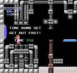 When Mother Brain is finally destroyed, a door will appear and a timer will start ticking down. You need to escape before the command center explodes! (In case you're wondering, you can't leave the room the way you came. You have to leave through the new door.) |